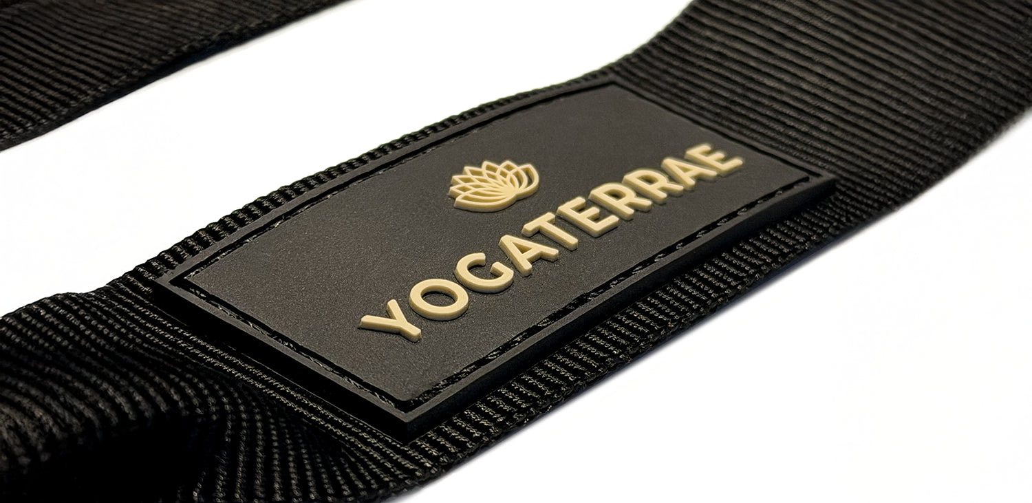 SANGLE DE YOGA NOIRE PREMIUM AVEC ÉTIQUETTE SILICONE 3D