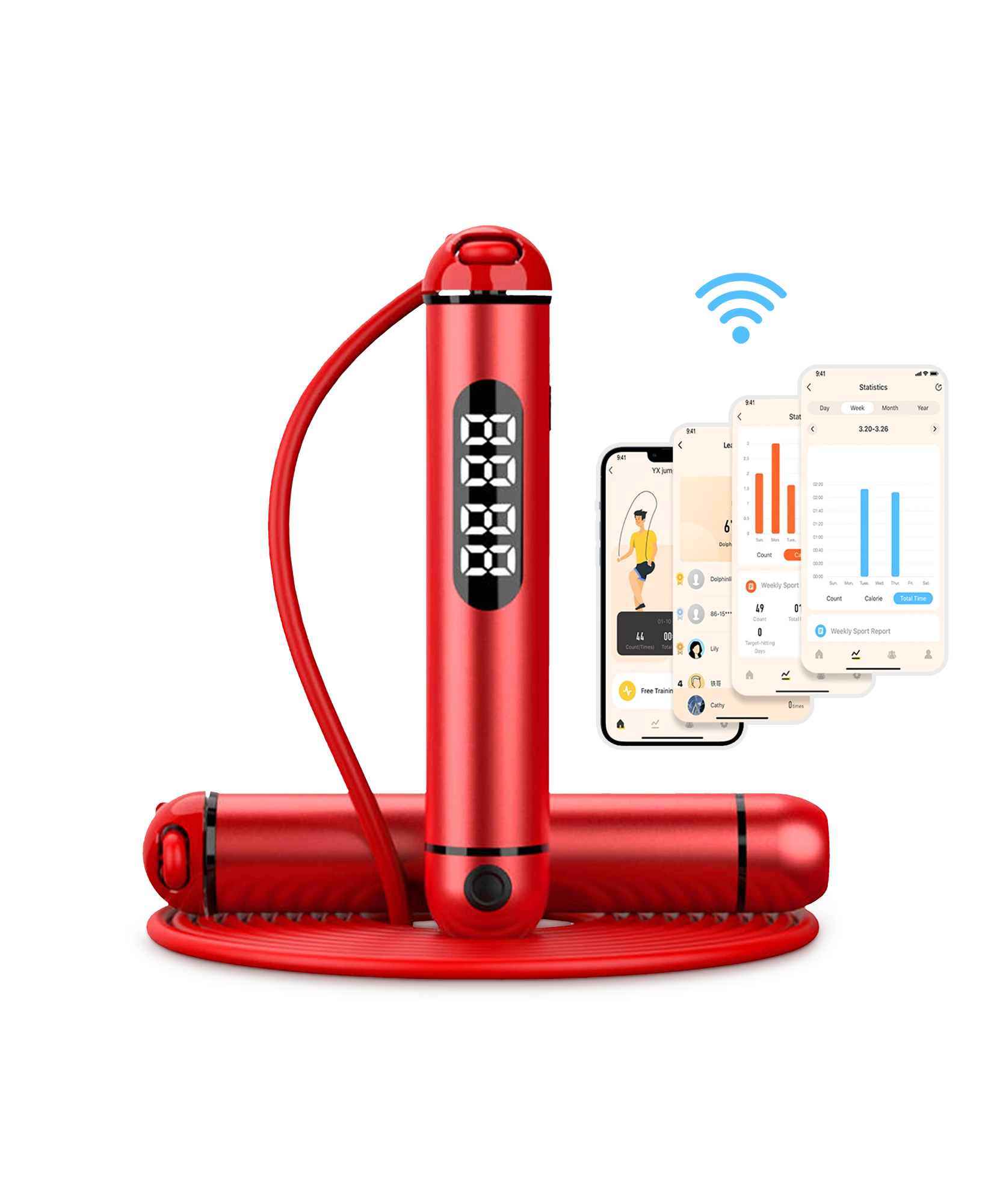 Accélérez le rythme avec cette corde à sauter connectée rouge, conçue pour booster vos entraînements avec intensité. Équipée d’une double option filaire et sans fil, elle allie design vibrant, affichage LED et connexion Bluetooth pour des sessions puissantes, intuitives et nomades. Pulsez le couple cardio-Yoga et découvrez son rythme.