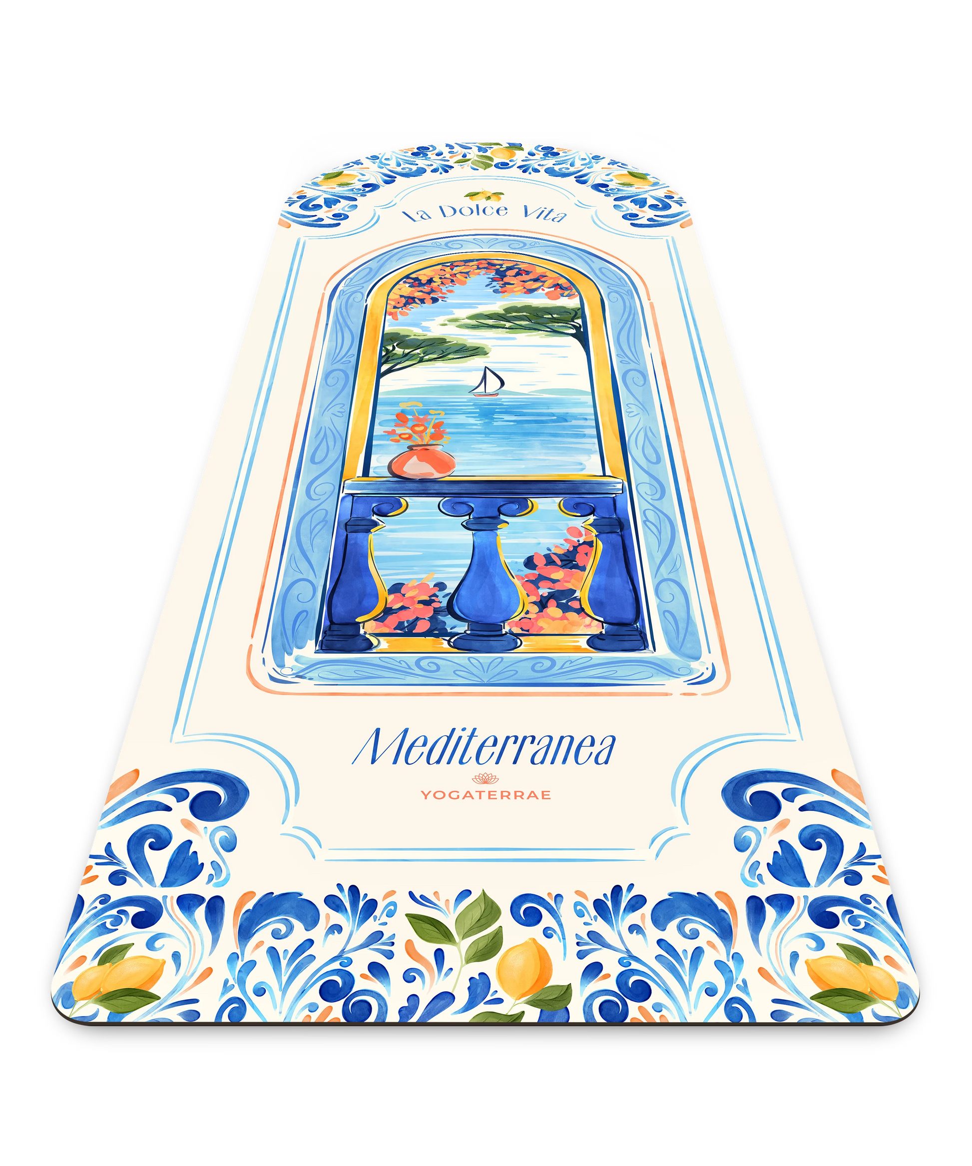 Ce tapis de yoga évoque l’élégance méditerranéenne : une arche en céramique, un balcon sur la mer, le chant des cigales en fond. Alliant design artistique et performance technique, il offre un ancrage fiable pour une pratique fluide, même en pleine chaleur.