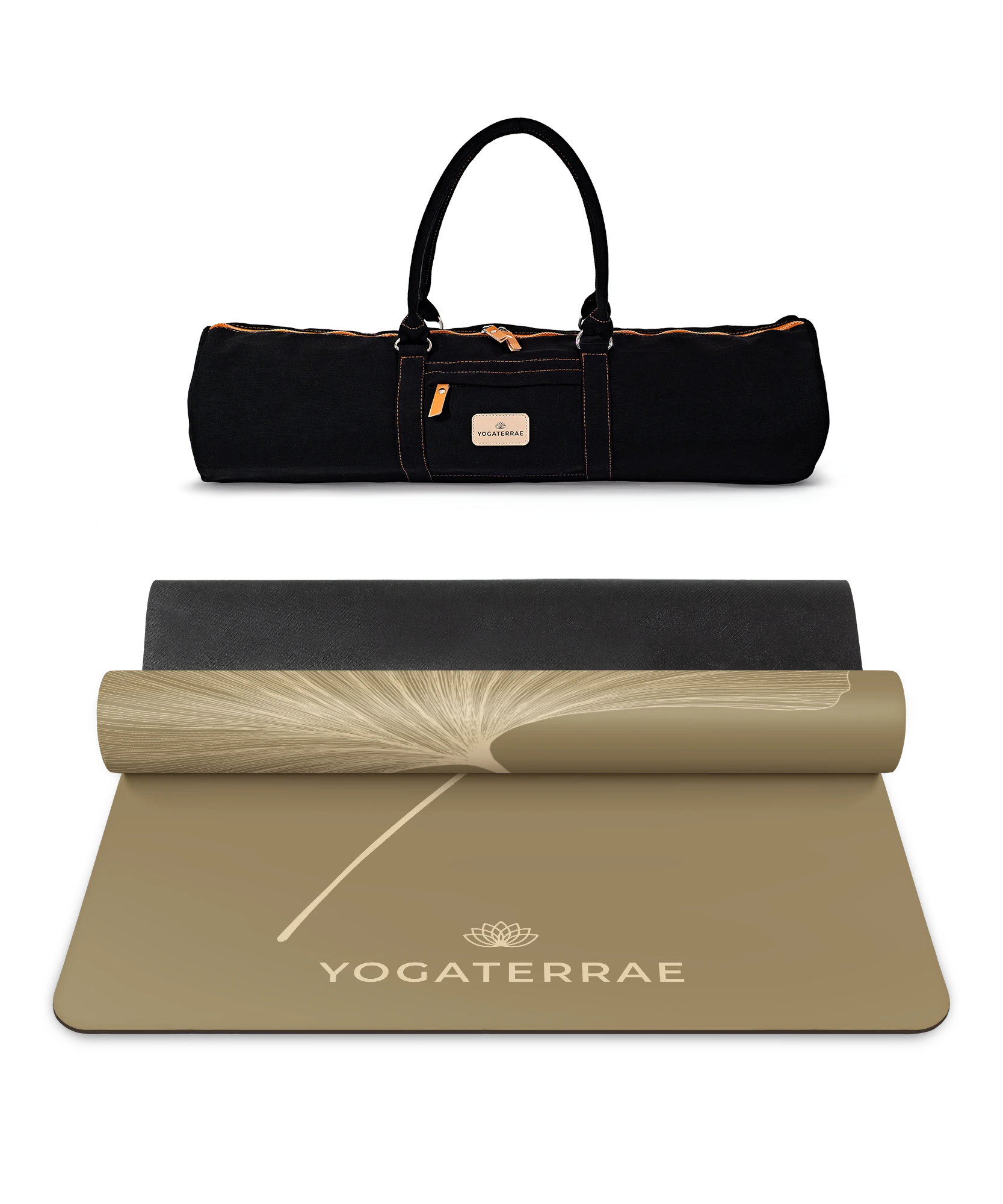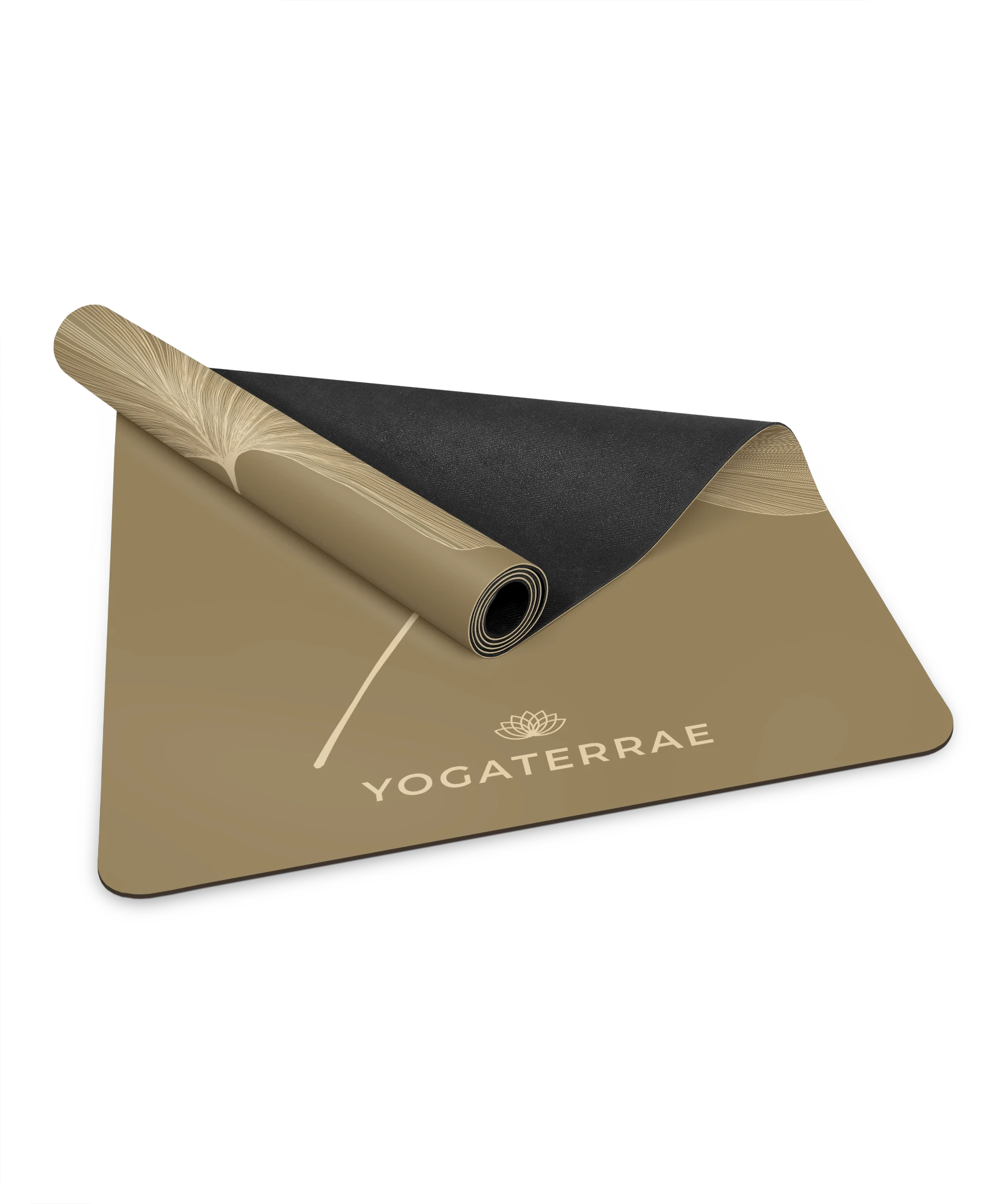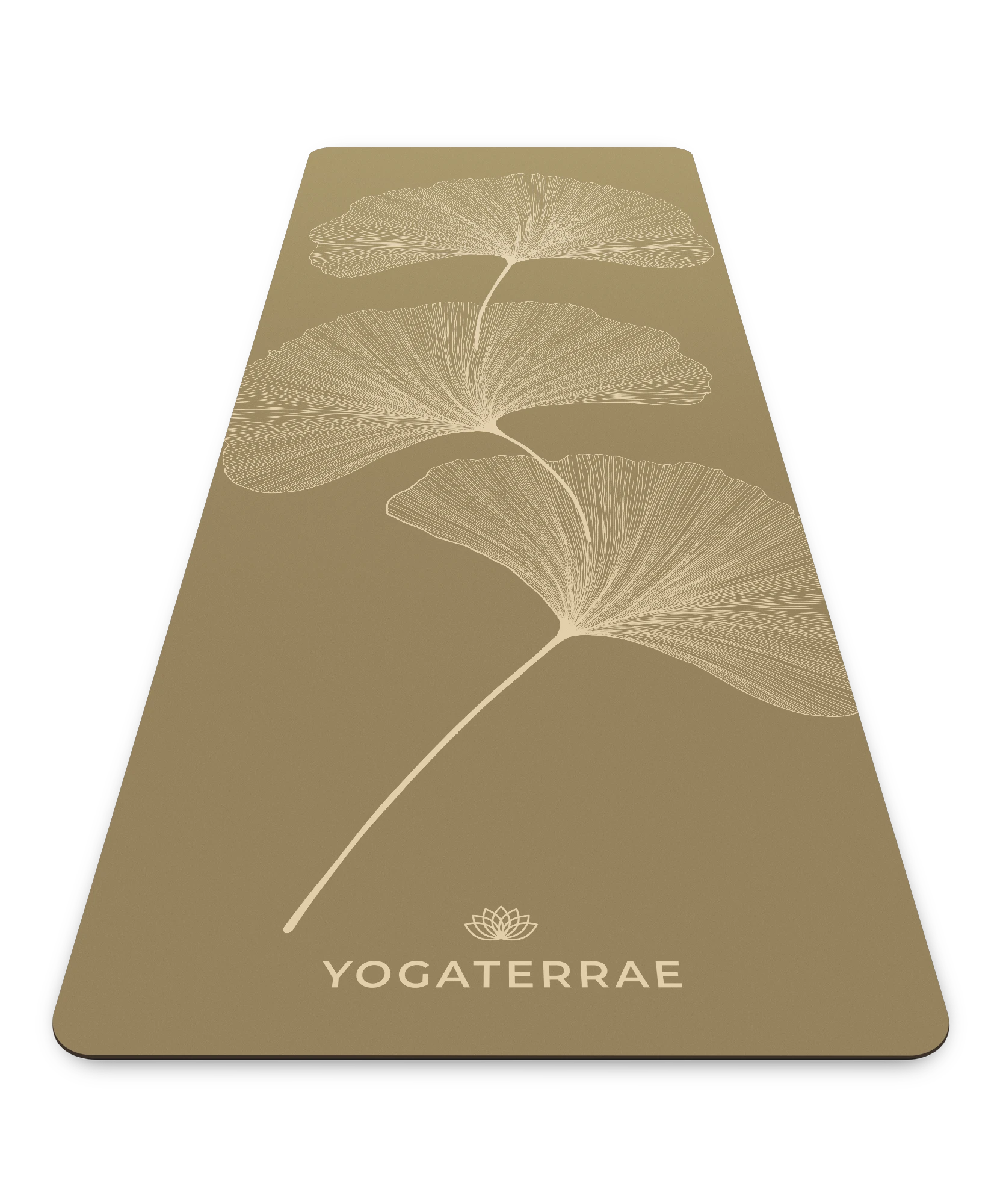 TAPIS DE YOGA GINKGOS BRONZE OLIVE LIGHT EN PU-CAOUTCHOUC NATUREL AVEC SAC