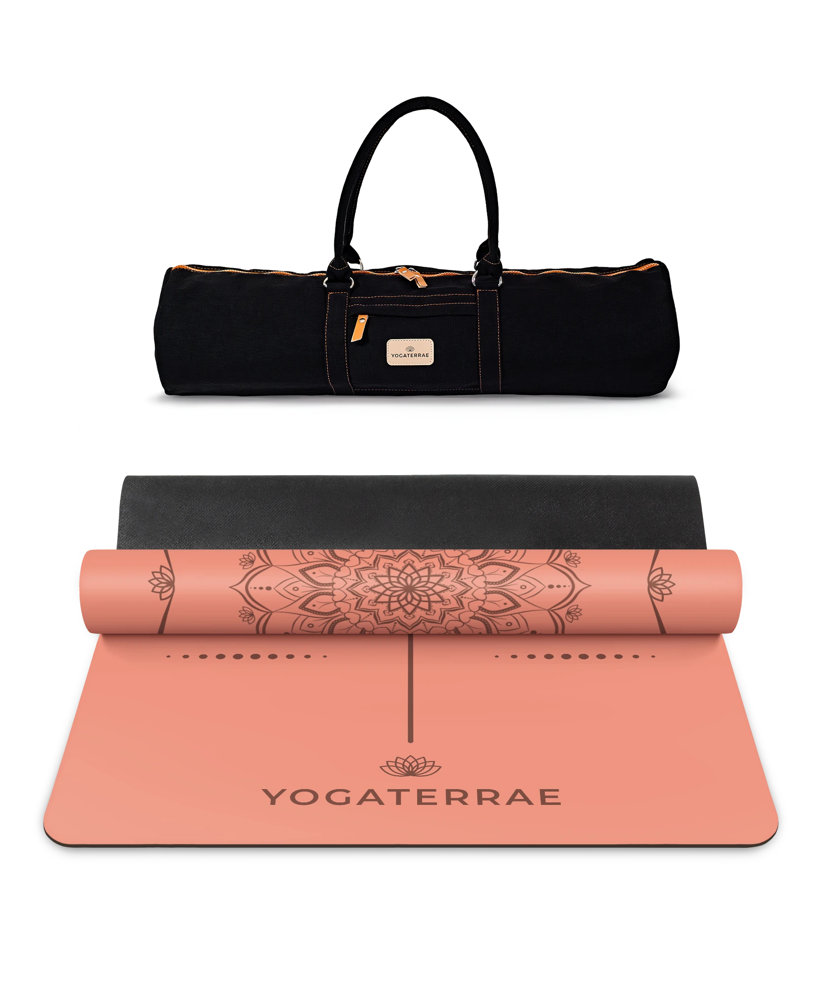 TAPIS DE YOGA MANDALA ABRICOT EN PU-CAOUTCHOUC NATUREL AVEC SAC