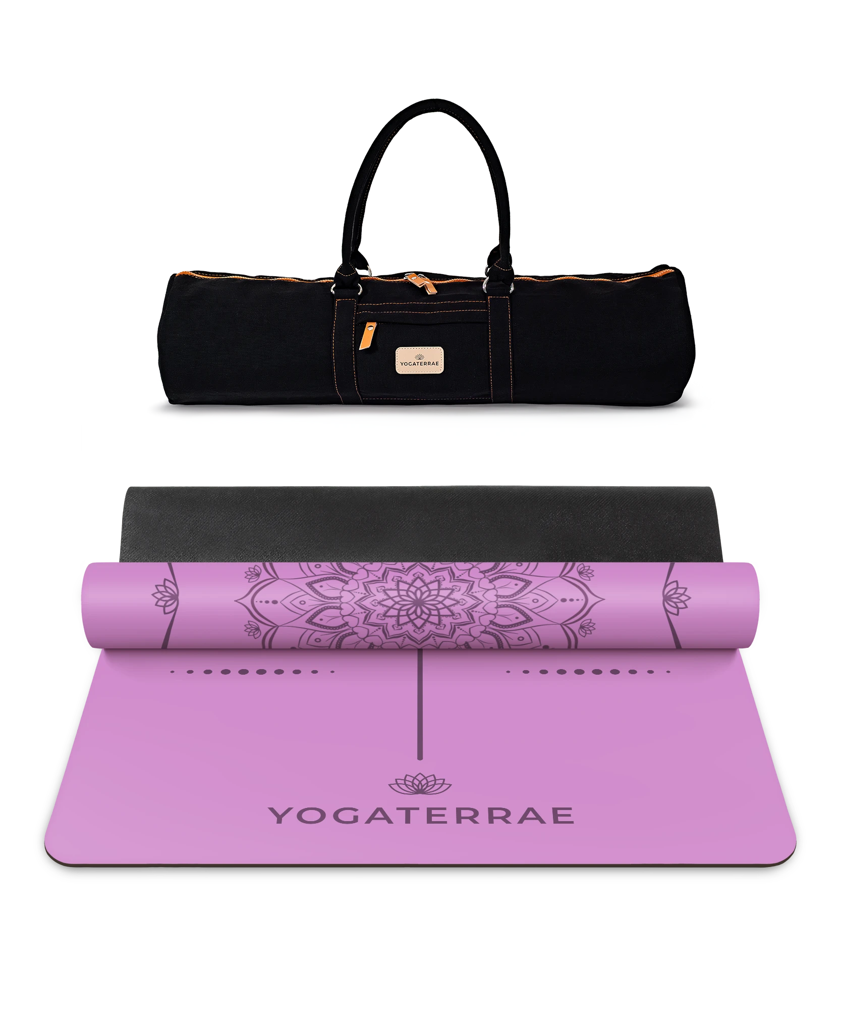 TAPIS DE YOGA MANDALA LAVANDE EN PU-CAOUTCHOUC NATUREL AVEC SAC