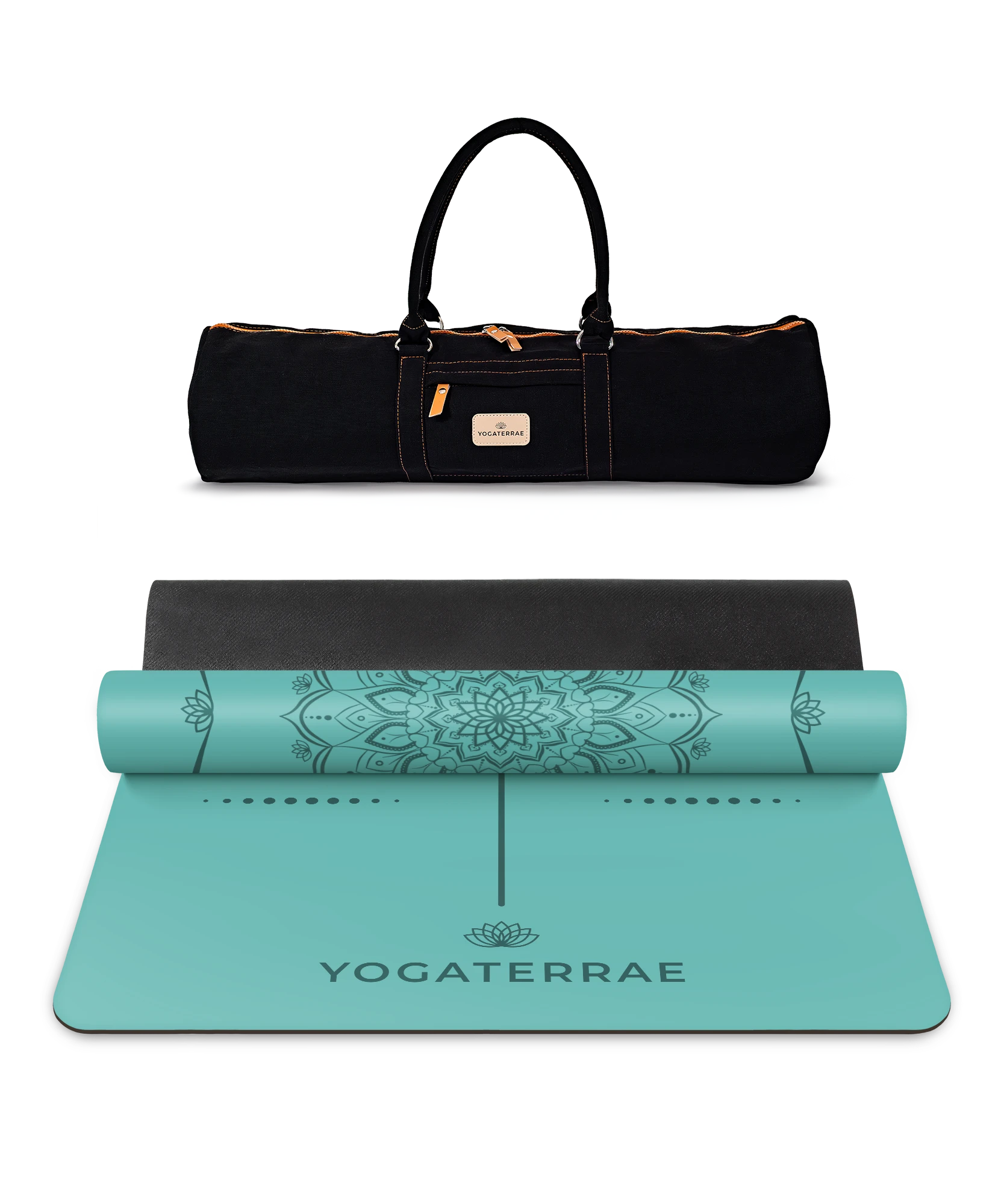 TAPIS DE YOGA MANDALA VERT MENTHE EN PU-CAOUTCHOUC NATUREL AVEC SAC