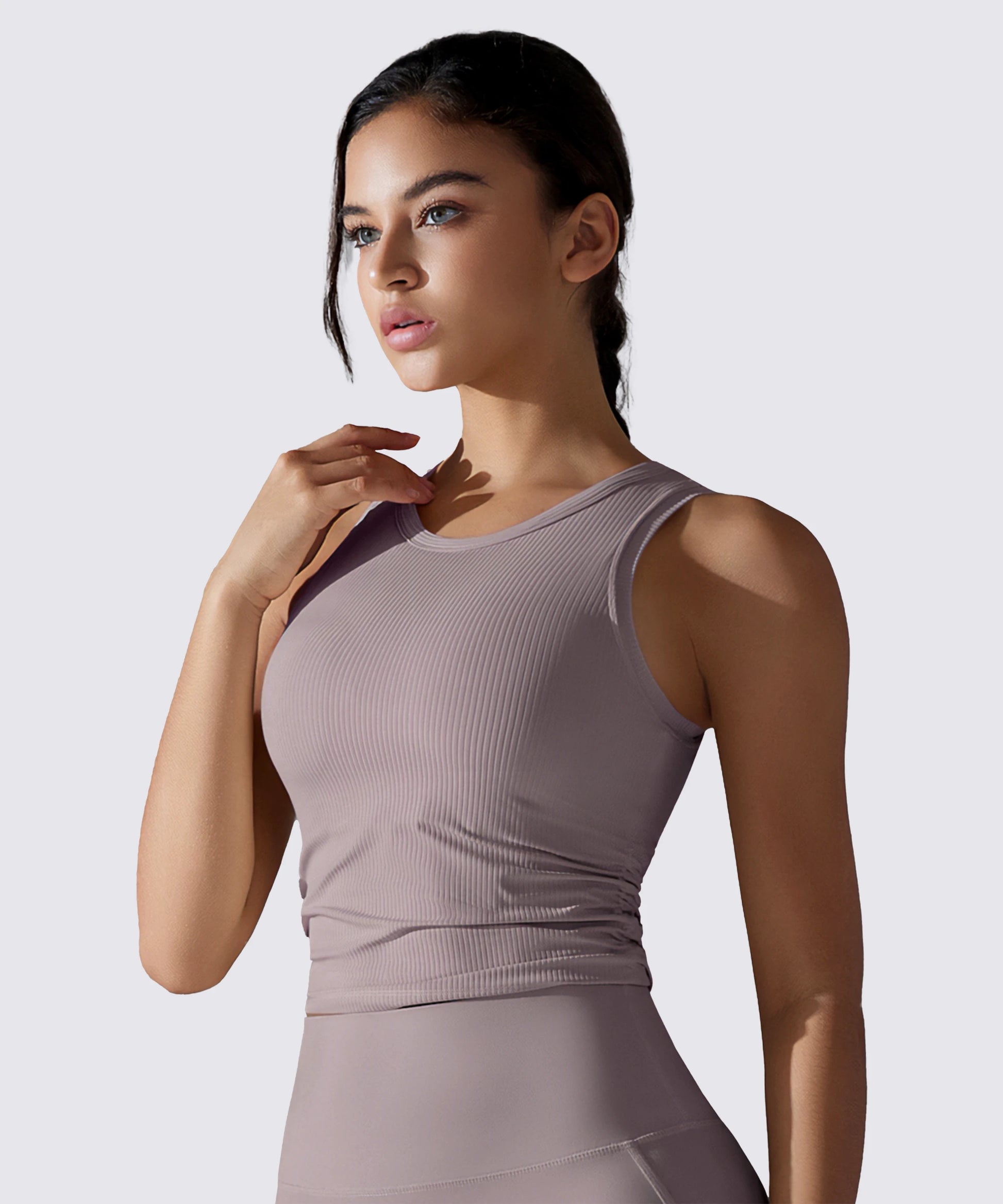 BRASSIÈRE DE SPORT CÔTELÉE PRUNE CONFORT ÉLÉGANCE ATHLEISURE
