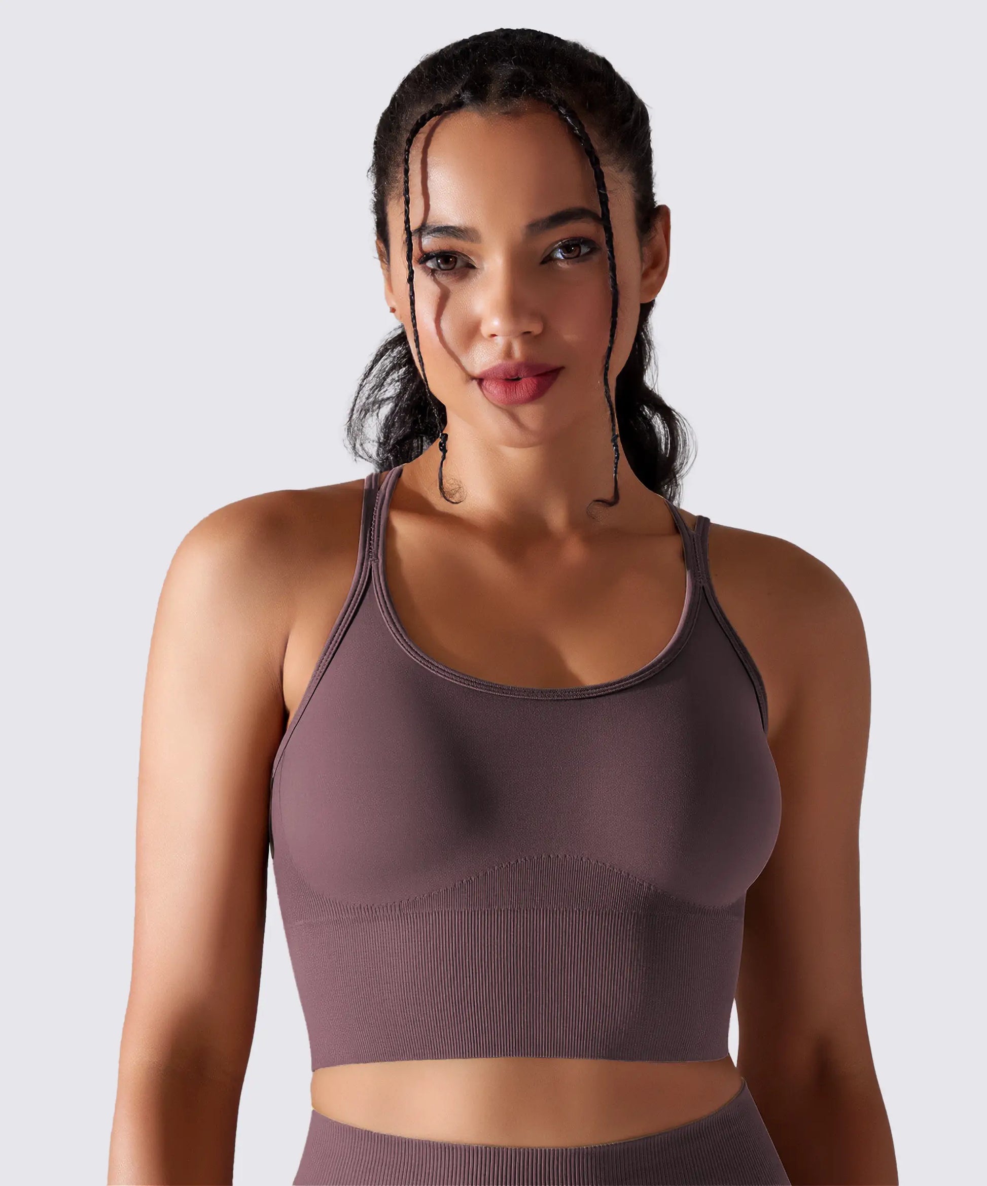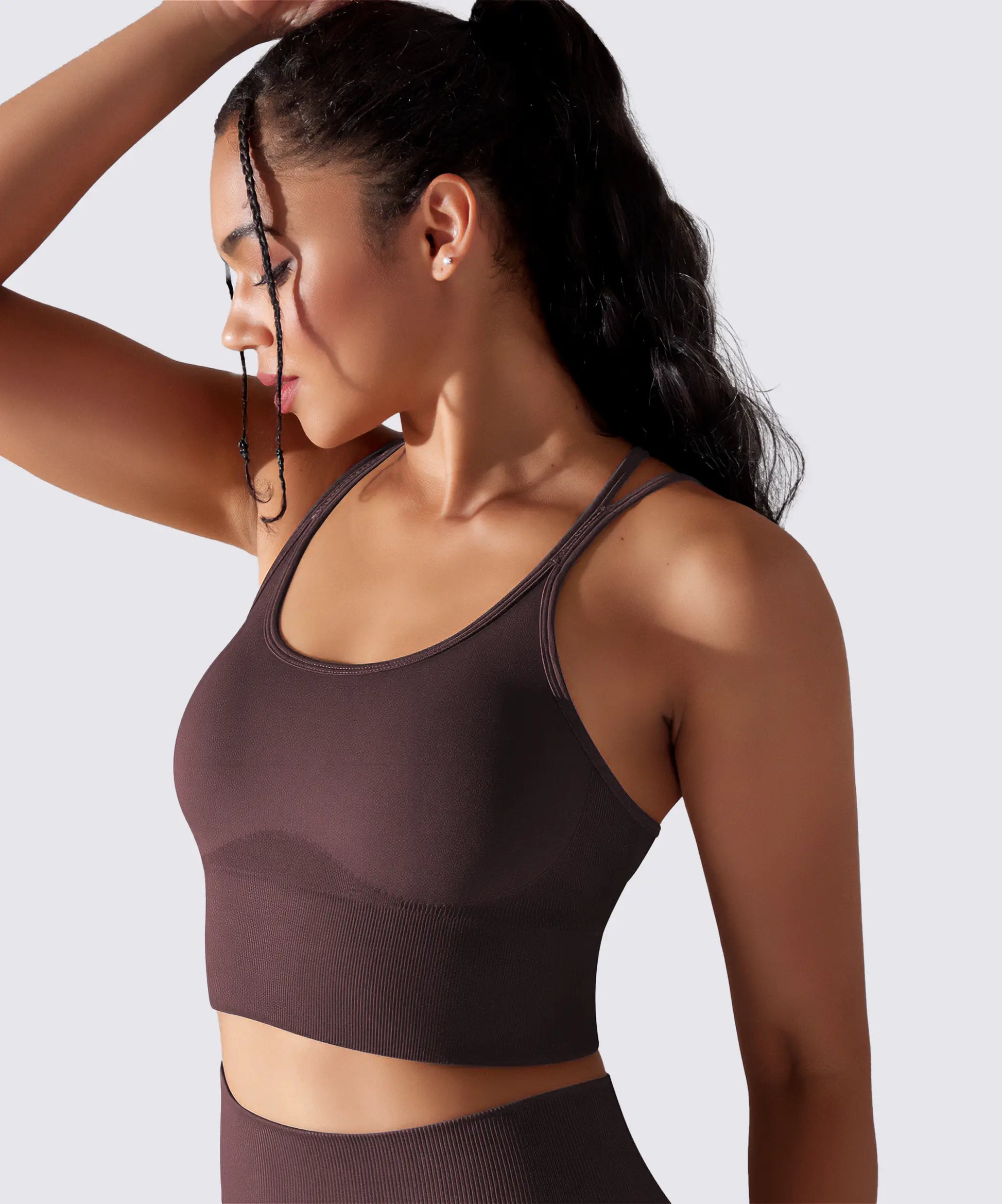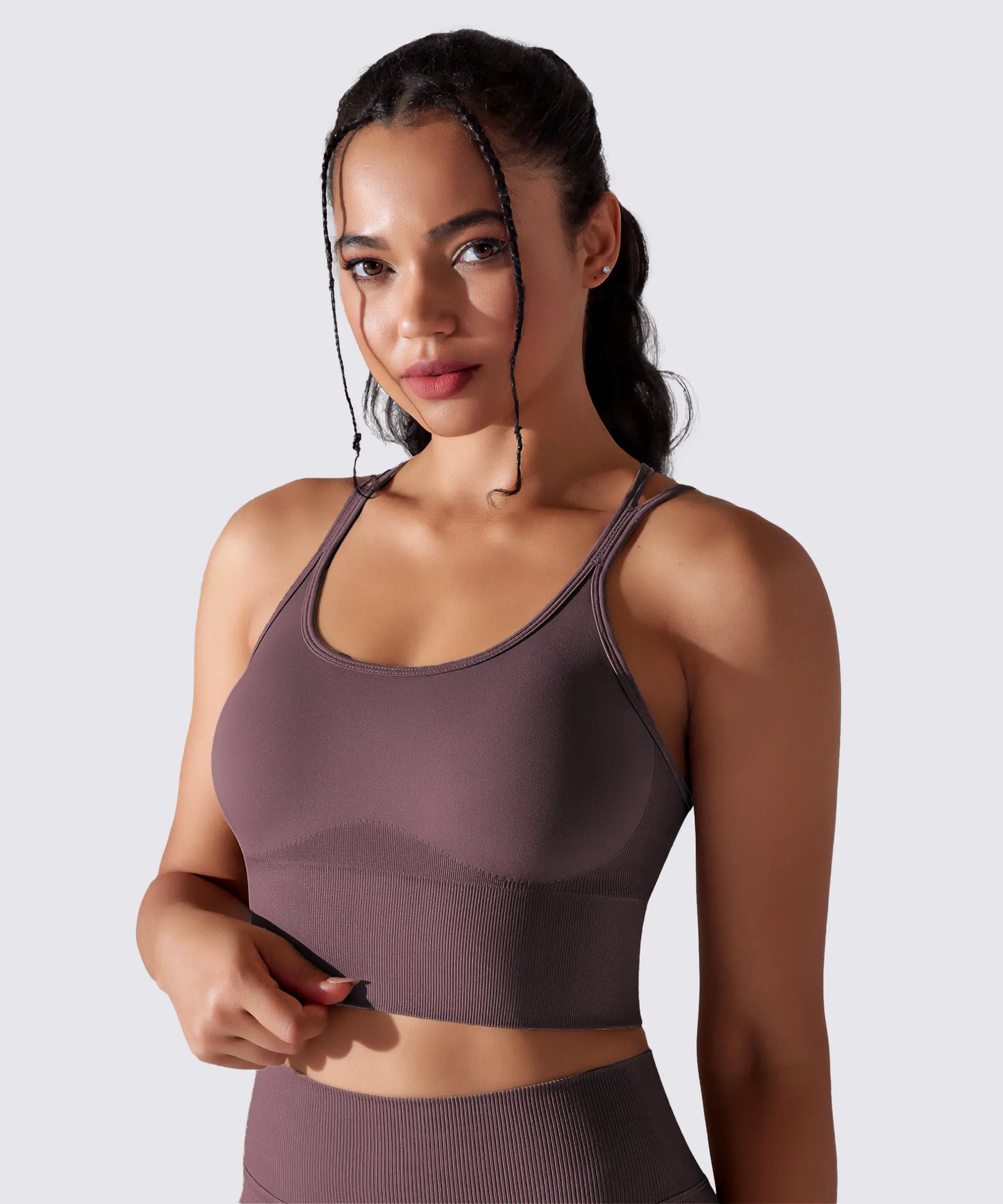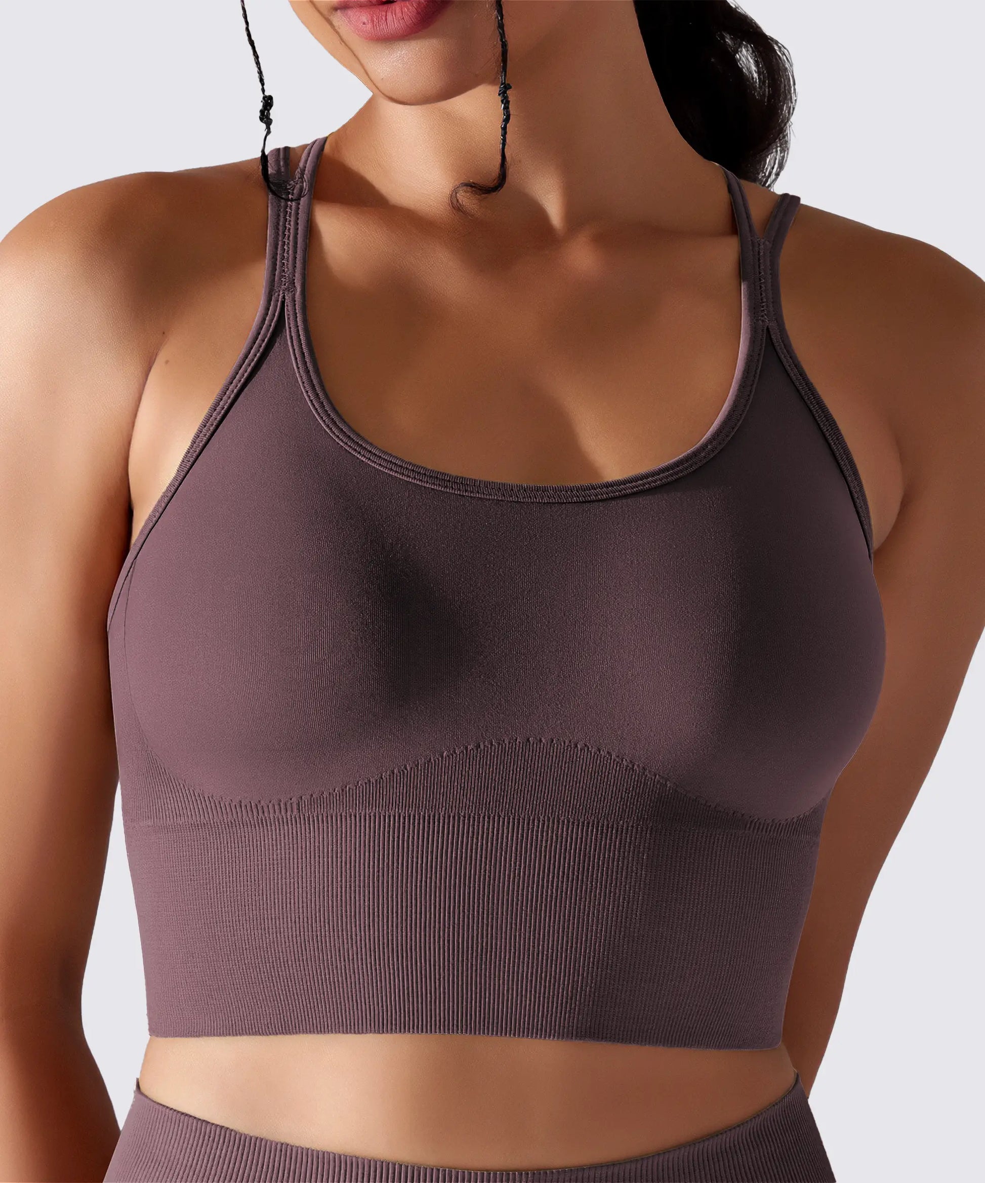 Élégante et performante, cette brassière de sport prune assure un maintien optimal tout en sublimant la silhouette. Son dos croisé raffiné apporte une touche sophistiquée, tandis que sa matière respirante garantit une liberté de mouvement totale. Idéale pour le yoga, le pilates et le fitness, elle allie confort et technicité. Sa teinte prune évoque énergie et équilibre, donnant du caractère à votre tenue d’entraînement.