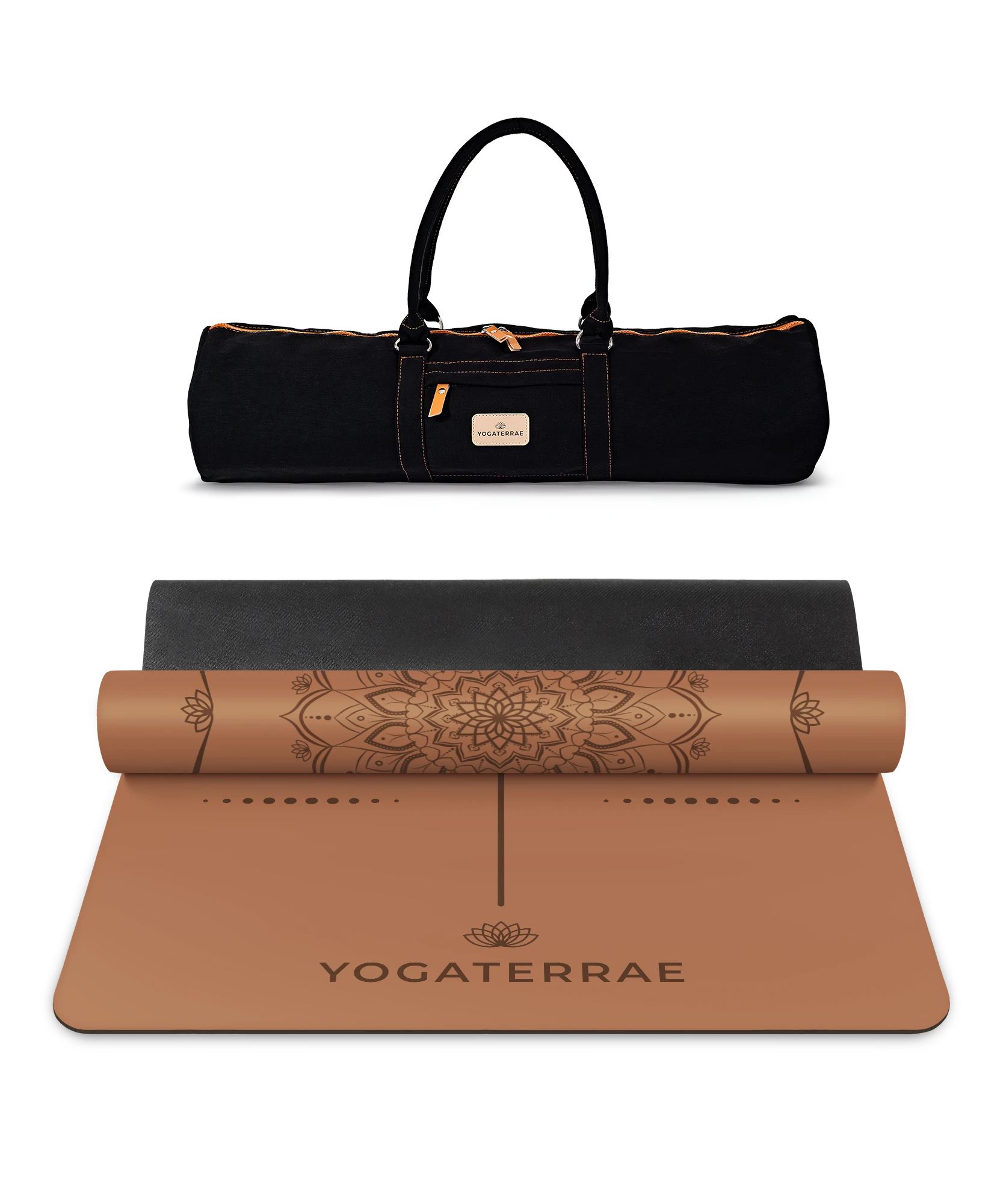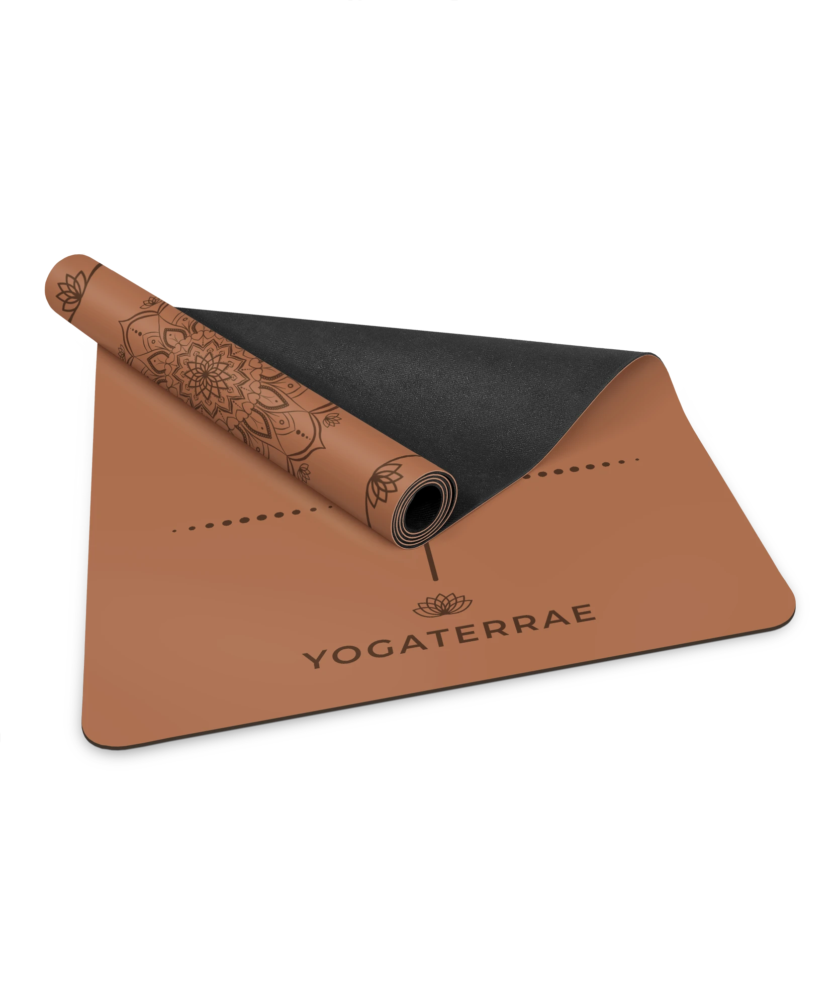 TAPIS DE YOGA MANDALA MARRON EN PU-CAOUTCHOUC NATUREL AVEC SAC
