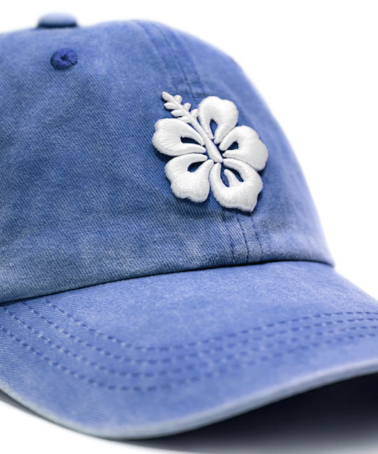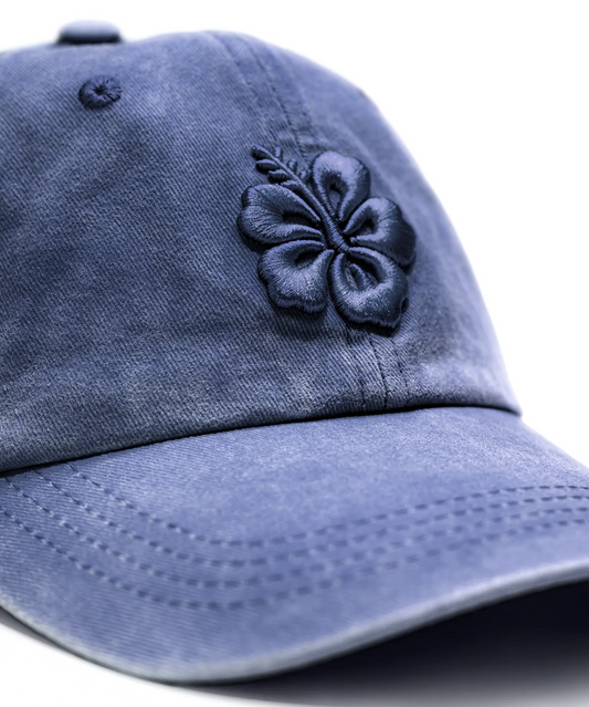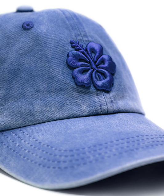 CASQUETTE BRODÉE 3D HIBISCUS BLEU JEAN'S TON SUR TON