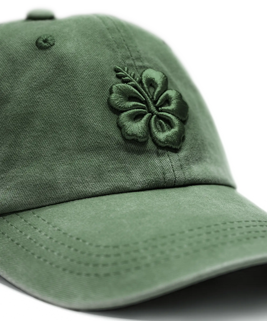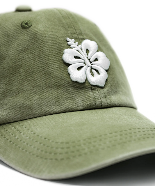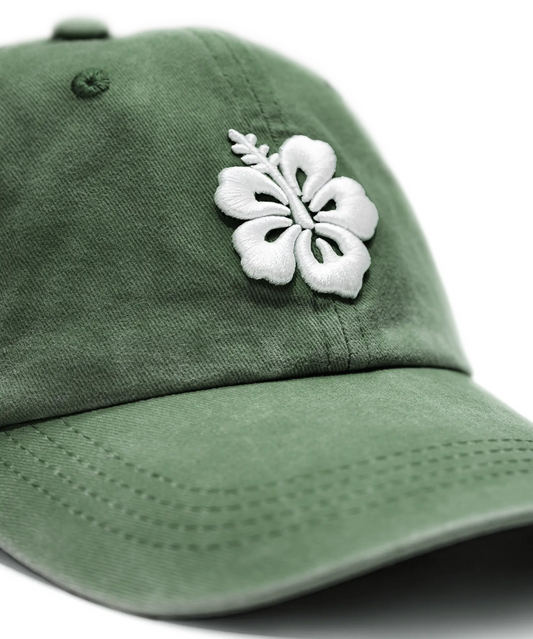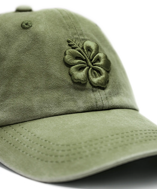 CASQUETTE BRODÉE 3D HIBISCUS VERT KAKI TON SUR TON