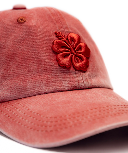 CASQUETTE BRODÉE 3D HIBISCUS ROUGE TON SUR TON