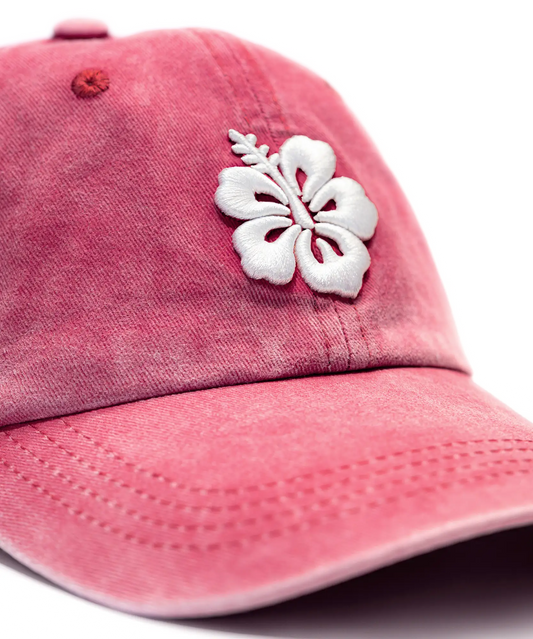CASQUETTE BRODÉE 3D HIBISCUS ROSE FRAMBOISE