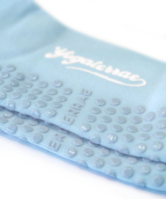 CHAUSSETTES FEMME ANTIDÉRAPANTES RAYURES CONTRASTÉES, BLEU CIEL