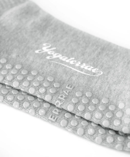 CHAUSSETTES FEMME ANTIDÉRAPANTES RAYURES CONTRASTÉES, GRIS CHINÉ