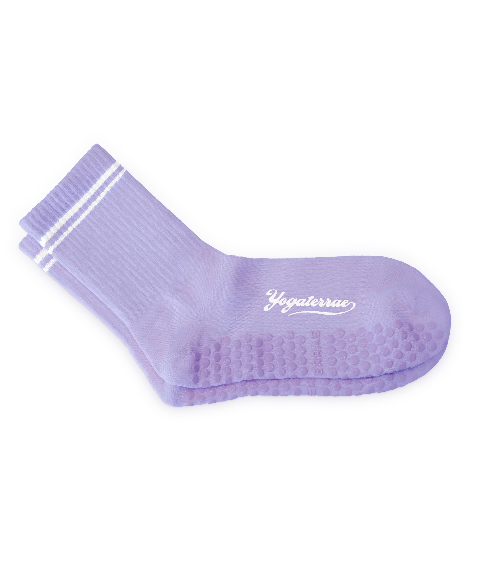 CHAUSSETTES FEMME ANTIDÉRAPANTES RAYURES CONTRASTÉES, LAVANDE