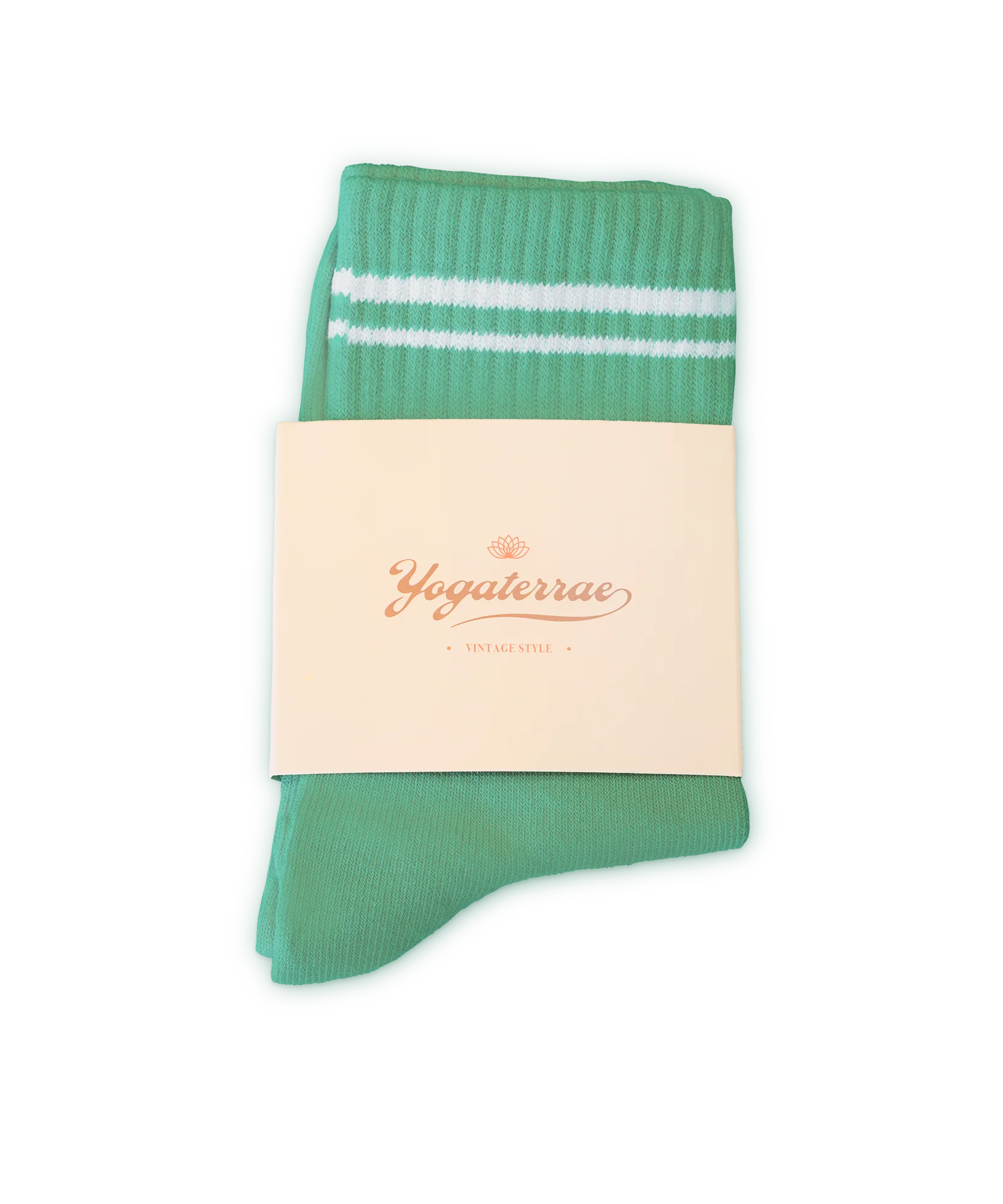 CHAUSSETTES FEMME ANTIDÉRAPANTES RAYURES CONTRASTÉES, VERT