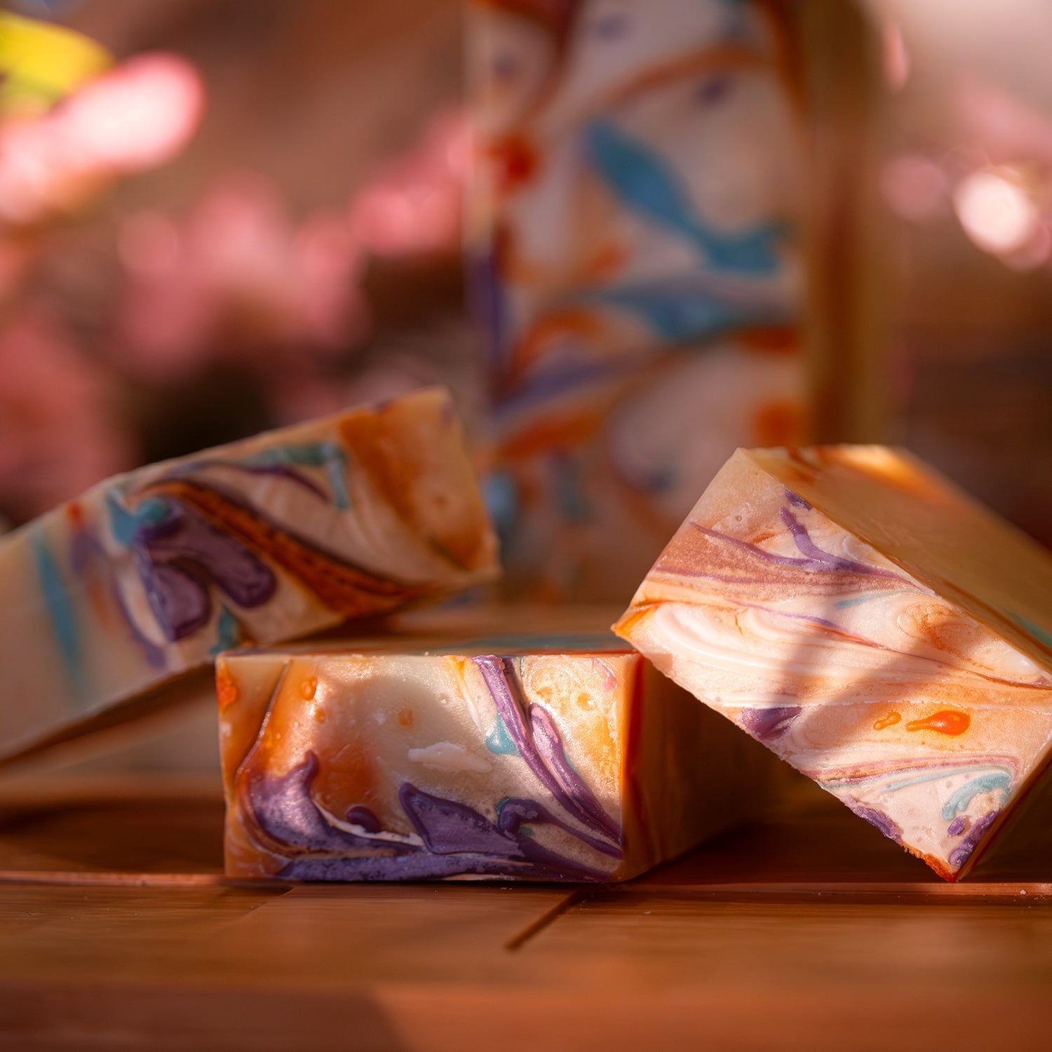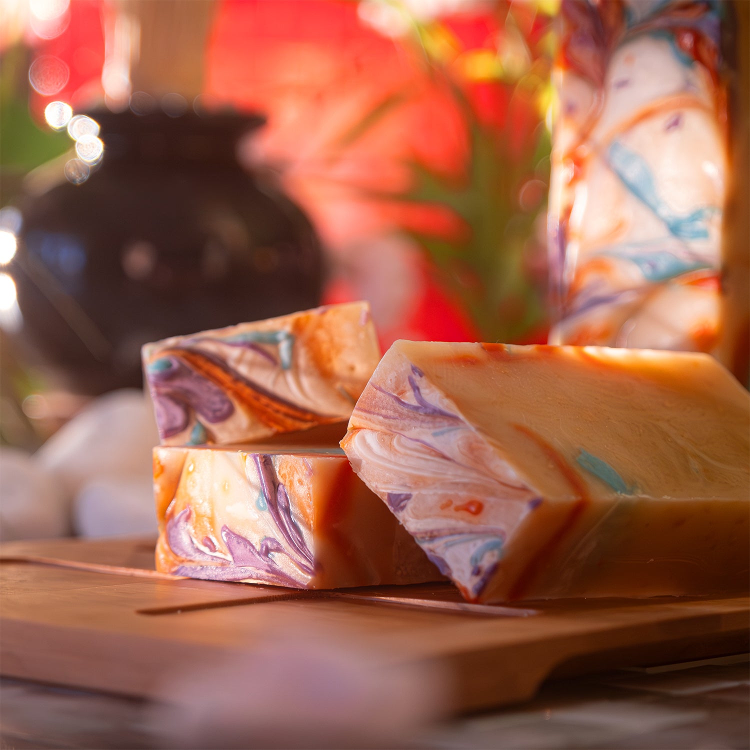 Découvrez la douce harmonie d'AMBROSIA, le savon artisanal qui évoque l'équilibre parfait et la sérénité recherchée dans chaque posture de yoga.