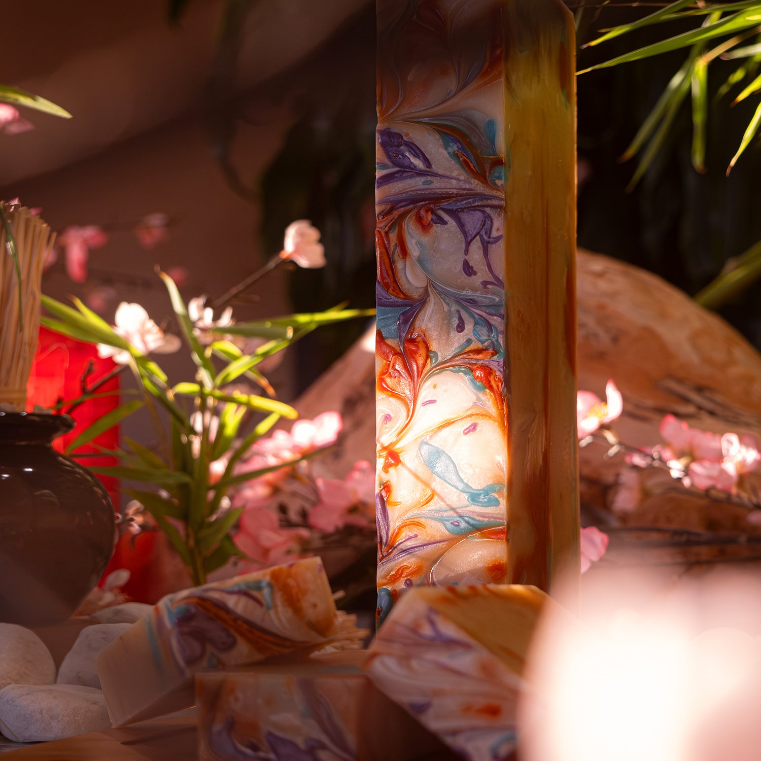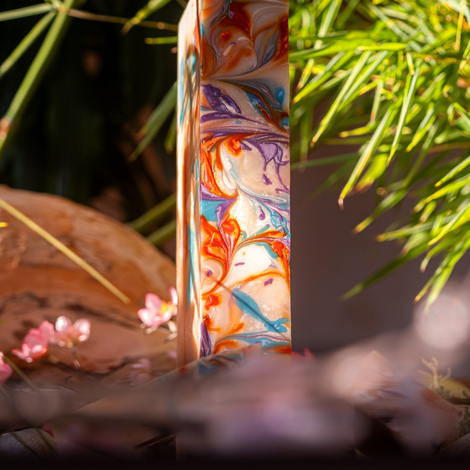 Découvrez la douce harmonie d'AMBROSIA, le savon artisanal qui évoque l'équilibre parfait et la sérénité recherchée dans chaque posture de yoga.