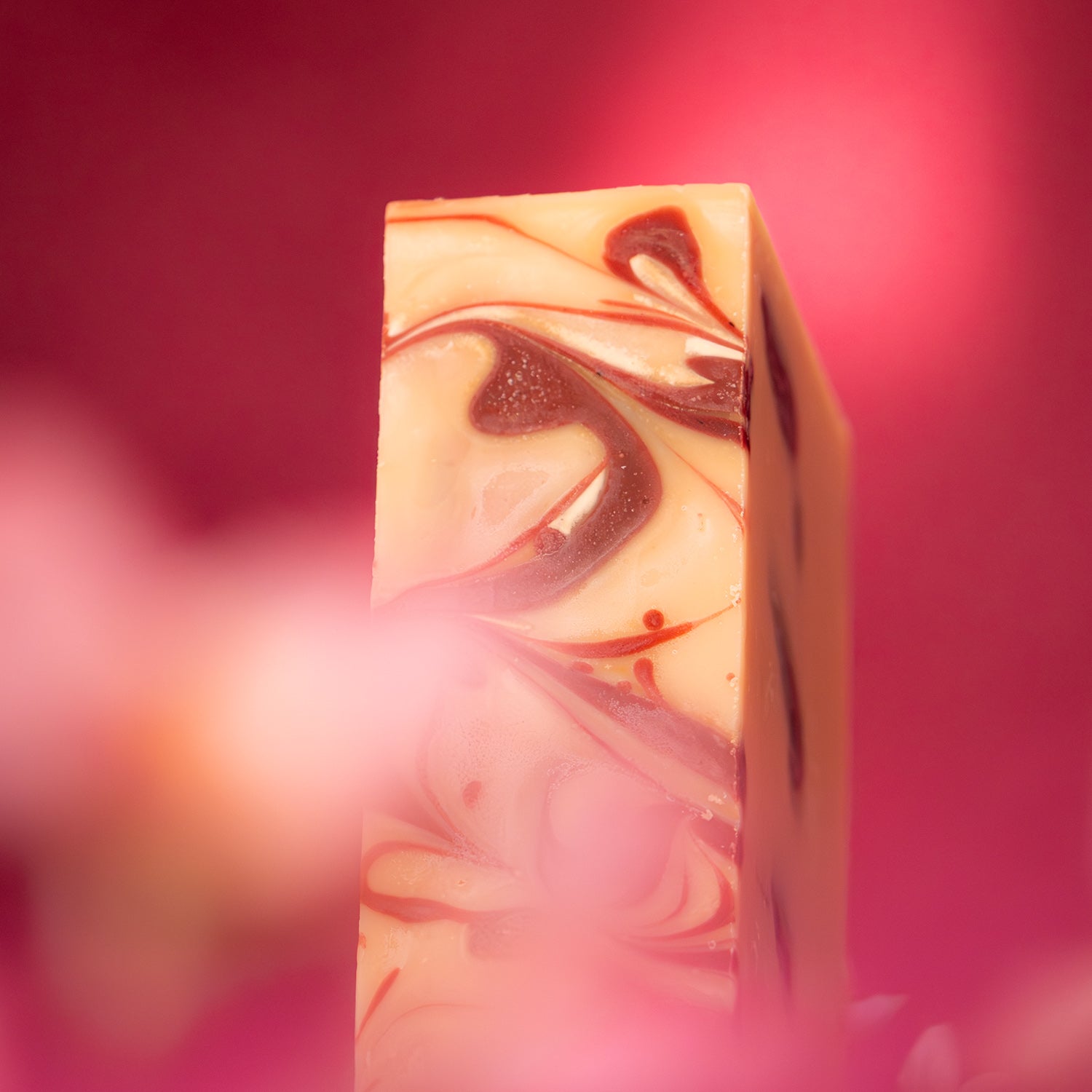 Chaque barre de ce savon luxueux est infusée avec du vin rouge authentique du terroir aquitain, connu pour ses notes robustes de fruits rouges et noirs, complété par une touche subtile de poivre, d'anis, et de bois.