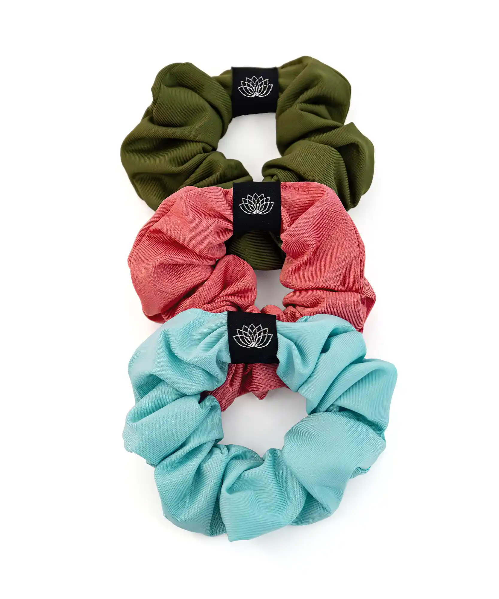SET 3 CHOUCHOUS TURQUOISE – KAKI – ROSE