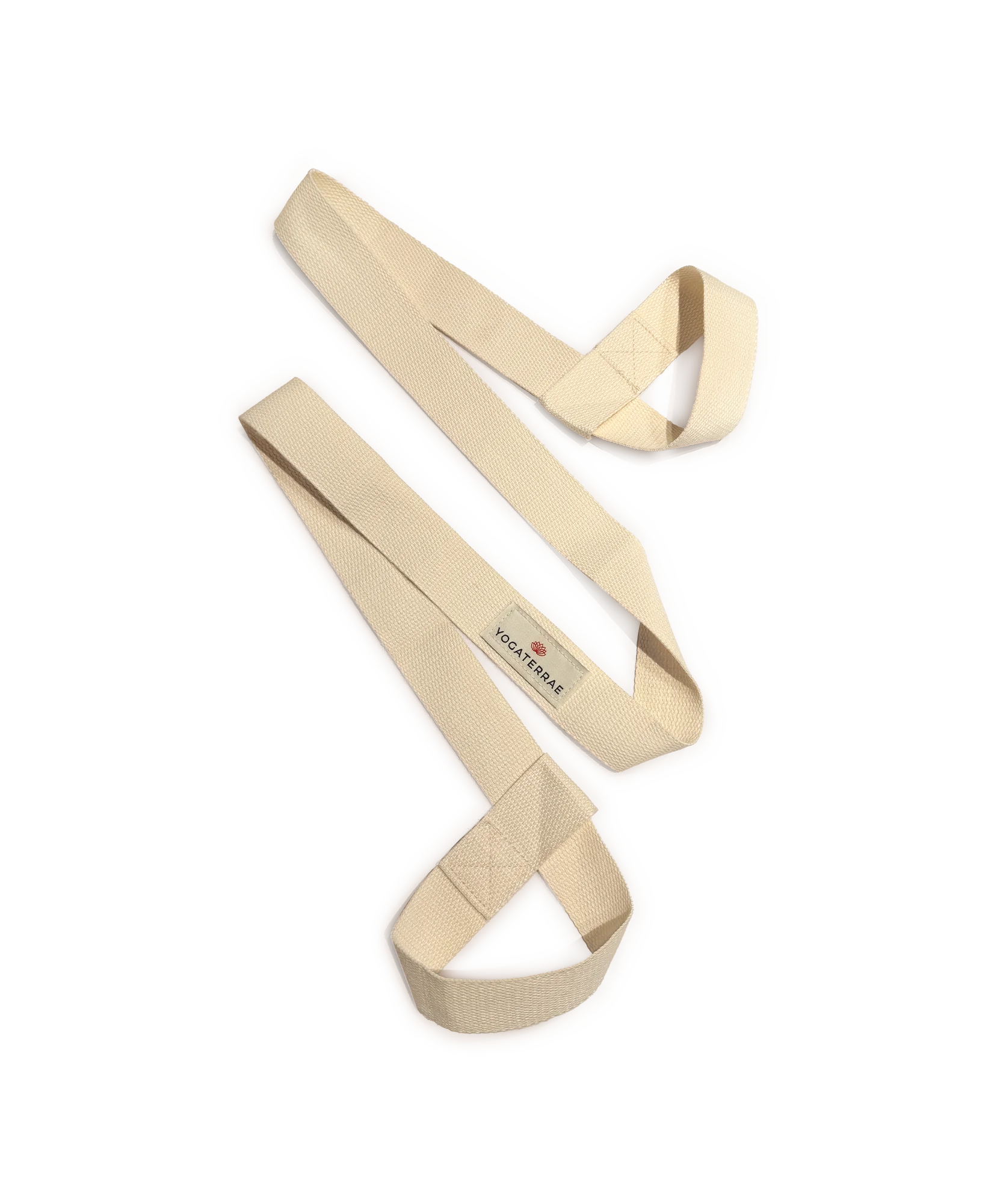 Sangle de yoga beige légère et épurée, idéale pour étirements doux et transport simple de votre tapis de yoga au quotidien.